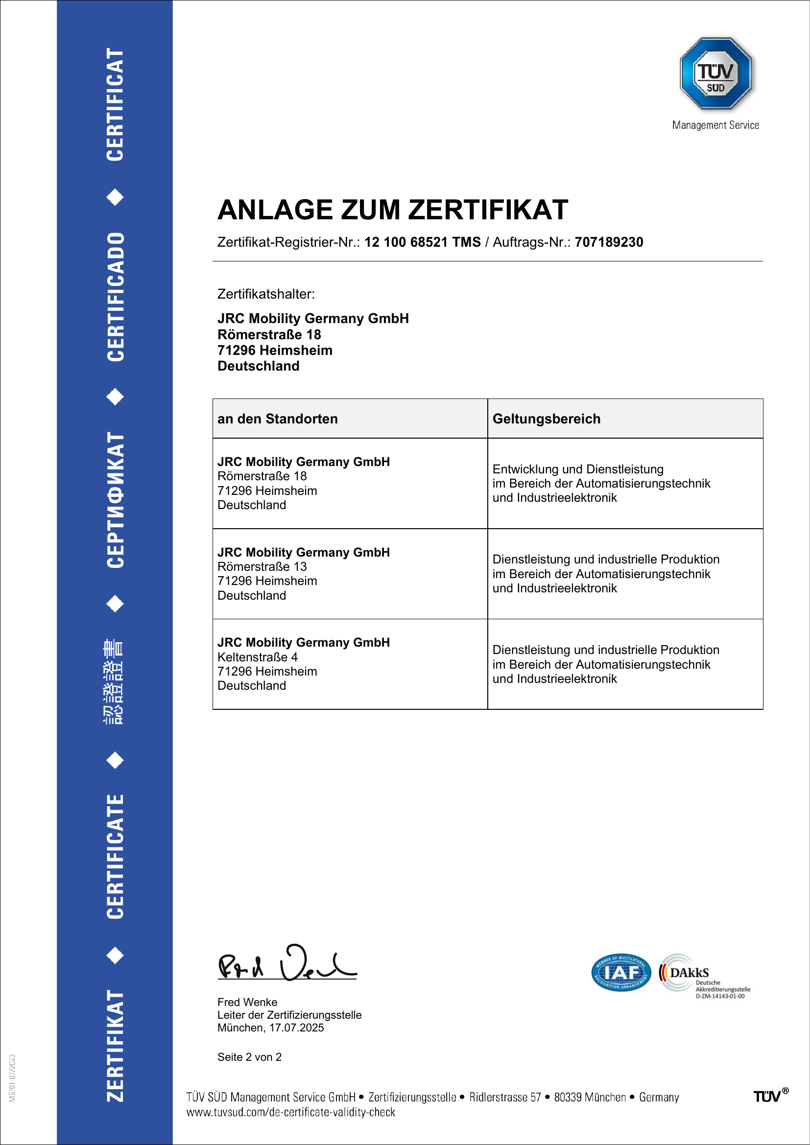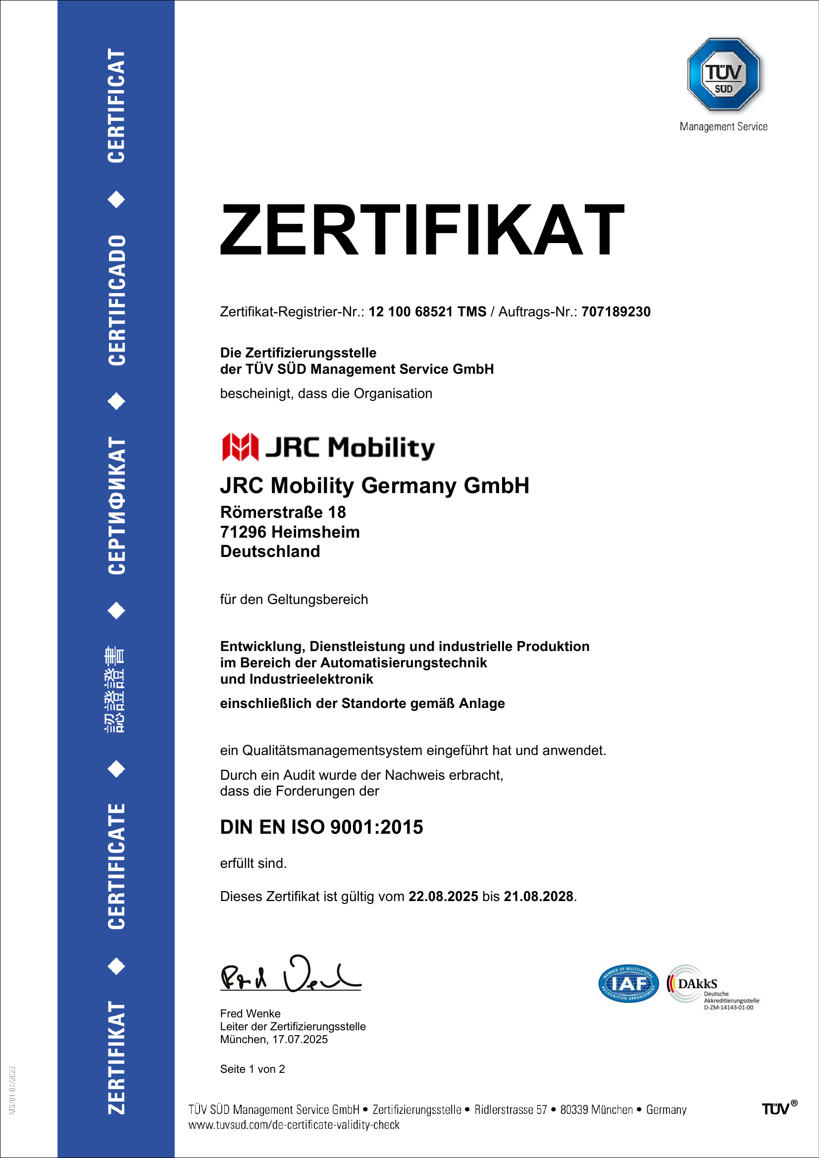 Unsere Qualitätspolitik, die von der Geschäftsleitung vorangetrieben wird, bezieht das gesamte Unternehmen ein. Unser Ziel ist es, hochwertige, sichere und langlebige Dienstleistungen und Produkte zu liefern, die den Bedürfnissen der Kunden entsprechen. Wir managen Risiken während des gesamten Produktlebenszyklus auf der Grundlage anerkannter Vorschriften und Normen.